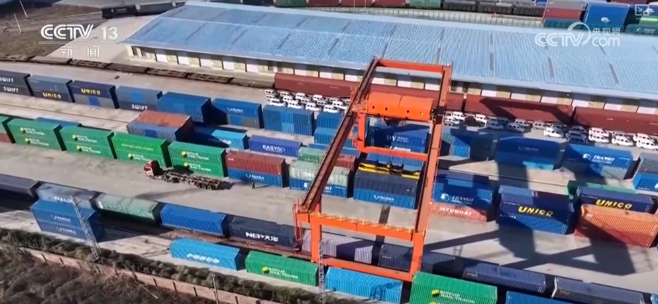 走進石家莊國際陸港園區,外貿企業的中轉庫房忙碌有序,大型貨車在中鐵特貨商品車分撥中心穿梭作業。龍門吊則將貨物精準吊裝至中歐班列車廂,為發車做準備。