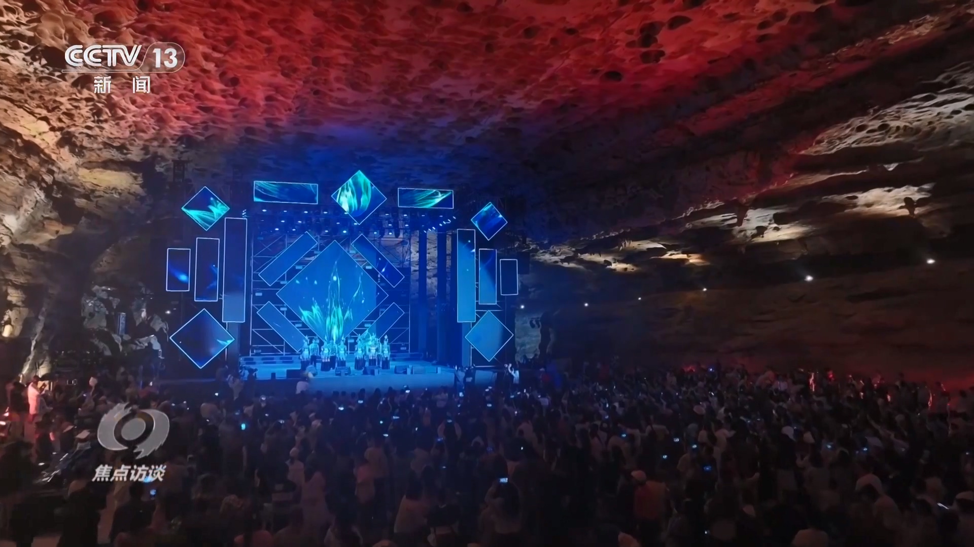 貴州綏陽縣溫泉鎮,因溶洞喀斯特地貌資源豐富,假期里當地將音樂會“搬進”了溶洞,專業音響系統被布置在鐘乳石群間,使音樂既能保留原聲質感,又能疊加洞穴獨有的空靈回響。洞中主舞臺還引入全息投影技術,將銀河系動態光影投射在億萬年形成的洞頂巖壁上,營造“地心音樂會”的奇幻氛圍。
