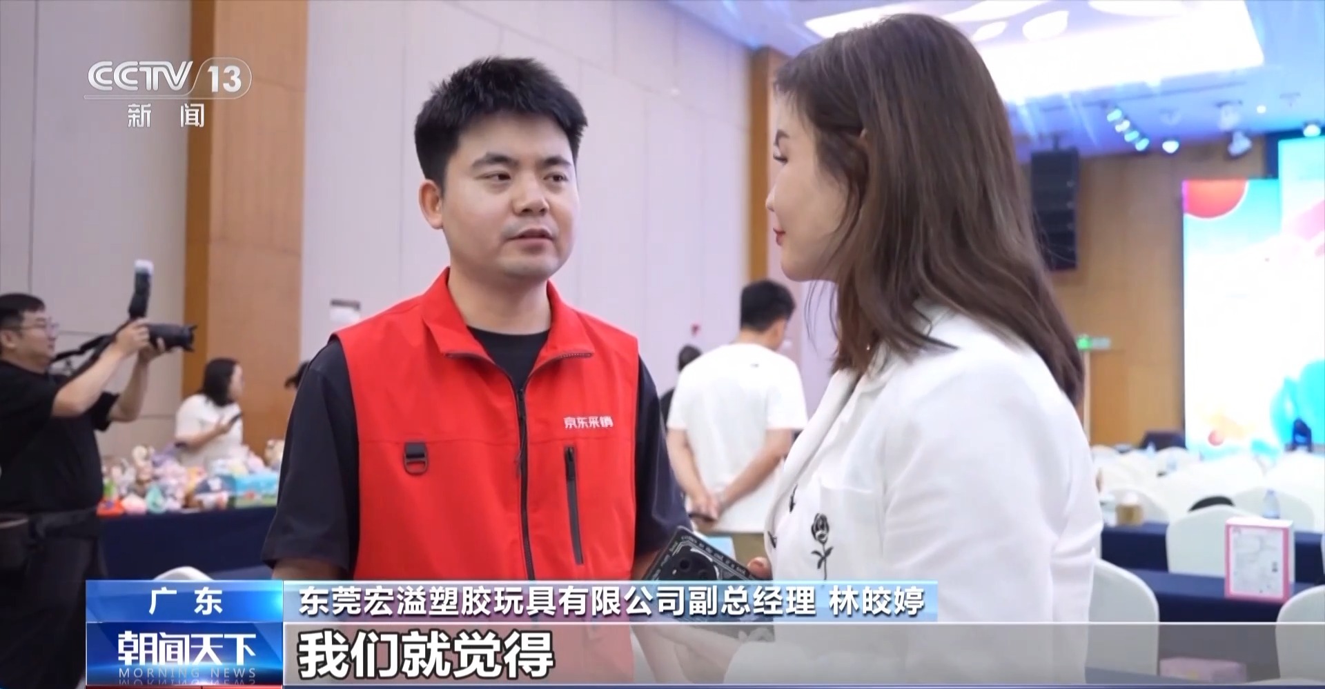 東莞宏溢塑膠玩具有限公司副總經理 林皎婷:我們公司一直都是銷往美國為多,銷往美國的營業額已經占了50%或以上,一直沒有做過內銷。我們覺得我們可以借這個平臺跟京東對接完以后,看怎樣帶領我們做內銷,把國內的市場做好。