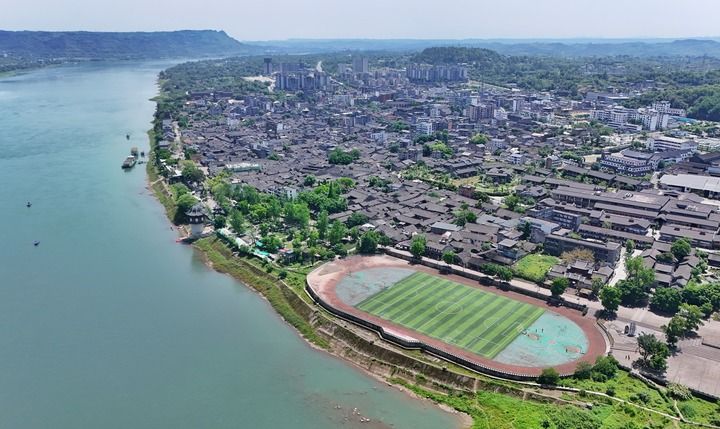 今天的李莊鎮上,位置最好的地方修成了李莊中學。學校操場坐落在長江邊,白天供孩子們運動,夜里向公眾開放。