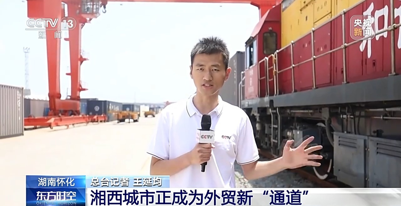 總臺記者 王延均:這是一條即將發往老撾的貨運專線,一共有70標箱,里面滿載著湖南省內生產的新能源汽車、小家電、農機、太陽能板等貨物。預計三天左右的時間就能把這些貨物從懷化運到老撾萬象。目前,在這里,僅發往老撾萬象的貨運專列每周都會有三列。