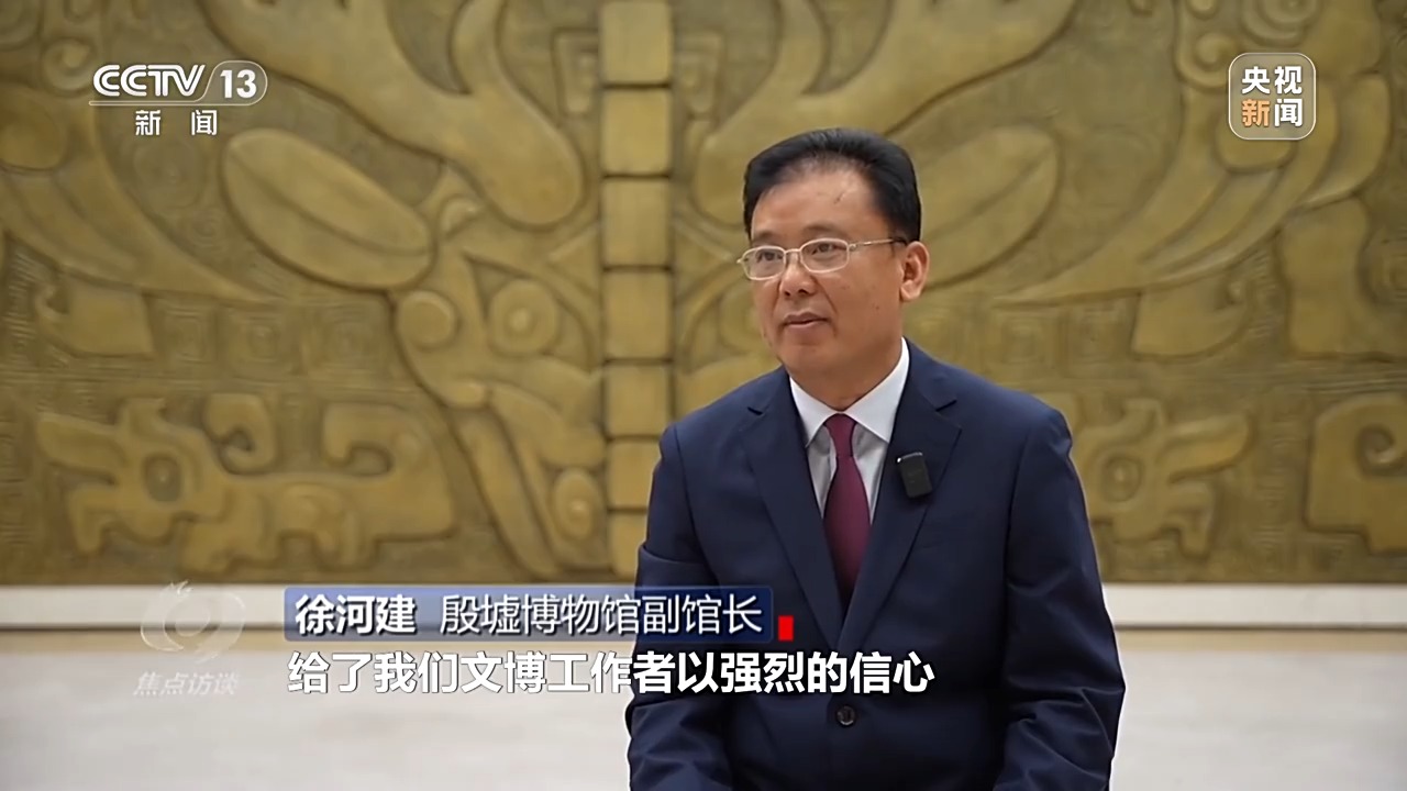 徐河建:總書記到殷墟考察給我們文博工作者強(qiáng)烈的信心,給我們指明了前進(jìn)的方向、提供了根本遵循。那么,如何傳承?我們綜合運(yùn)用科技賦能、人工智能、數(shù)字顯能,讓文物活起來。
