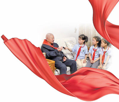 “謝謝你們。”孔憲德低頭看著胸前的紅領巾,笑得像個孩子。他顫巍巍地想要站起身,但已經十分困難。忽然,他張開口,斷斷續續地唱了起來:“向前,向前,向前!我們的隊伍向太陽……”聲音沙啞,甚至有些跑調,但每一個字都咬得極重。“這么多年,他忘了許多事,但這首軍歌,他一句都沒忘,他最喜歡唱這首。”鏗鏘的旋律里,孔毅濕潤了眼眶。