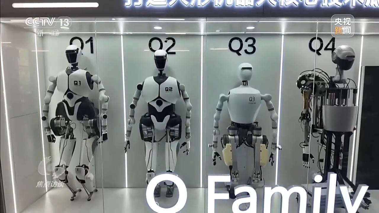 Q5是全尺寸具身智能人形機器人,它腿部強壯有力,有著出色的穩定性和承重能力。Q5的特點是從大腦、小腦、脊髓等原理模仿人類智力、行動和協同能力,是面向多場景、高精度、長續航作業需求研發的機器人。除了Q5人形機器人,這個全國重點實驗室的人形機器人攻關團隊還研制出了從Q1到Q4本領不同的系列人形機器人。
