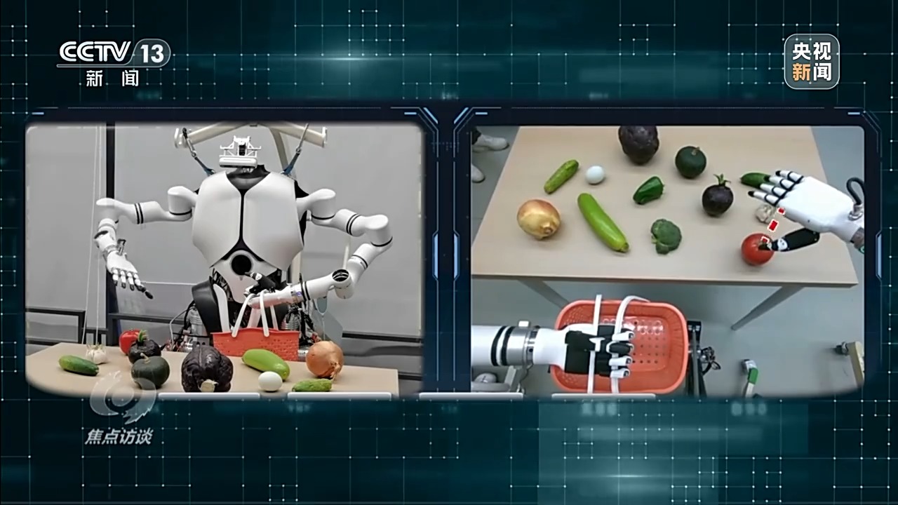 在中國科學院自動化研究所多模態人工智能系統全國重點實驗室,科研人員正在對人形機器人Q5進行語言指令和視覺跟隨訓練。