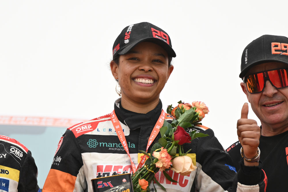 ↑6月1日,零公里潤滑油ZM-Buggyra車隊塞舌爾車手阿莉亞·科洛克參加收車儀式。新華社記者 辛悅衛 攝