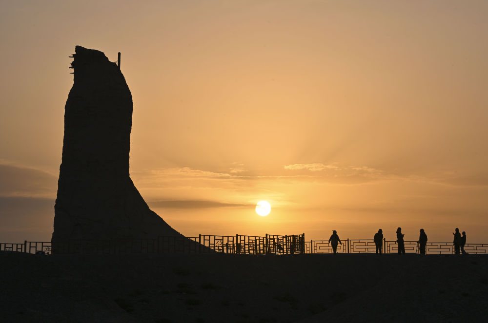 游客在克孜爾尕哈烽燧參觀(2024年10月31日攝)