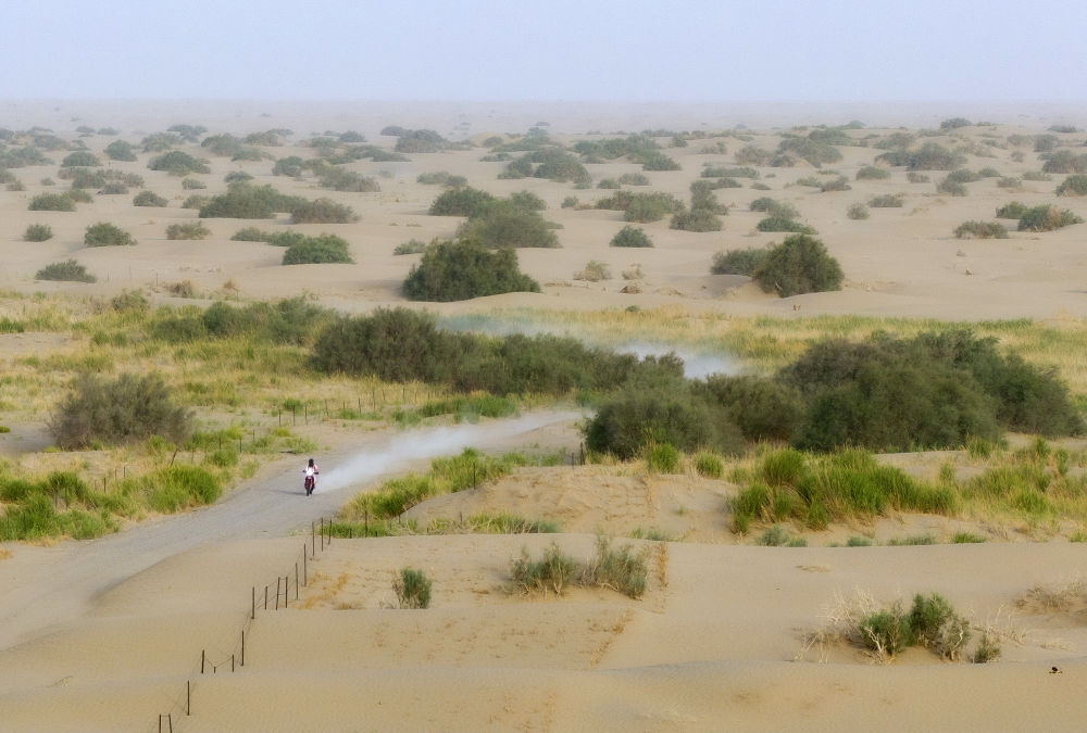 第九賽段在新疆喀什地區麥蓋提縣的沙漠中進行。新華社記者 辛悅衛 攝