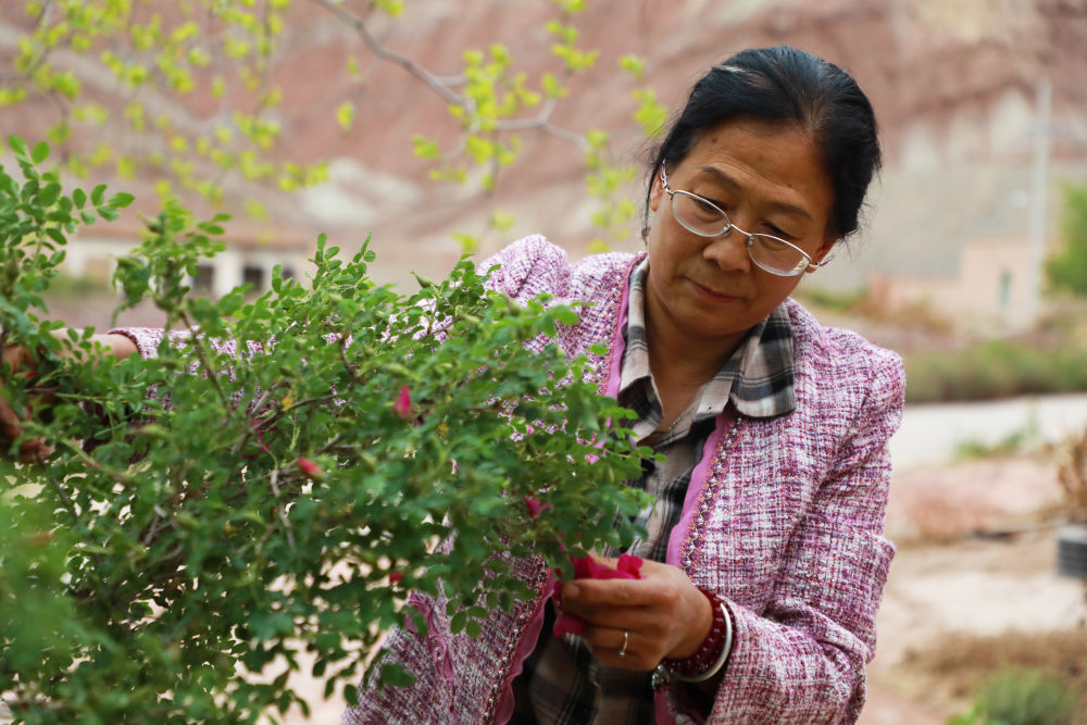 這是花期中的苦水玫瑰。新華社發(童張偉 攝)