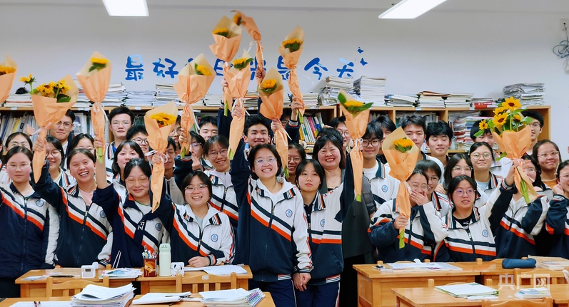 課堂上,除了有來自老師和同學(xué)們的祝福,還有一份特別的禮物。在前一天,學(xué)弟學(xué)妹們親手摘下了校園里種植的向日葵,送給即將畢業(yè)的學(xué)長(zhǎng)學(xué)姐,祝愿他們“向陽而生”,未來一路生花。