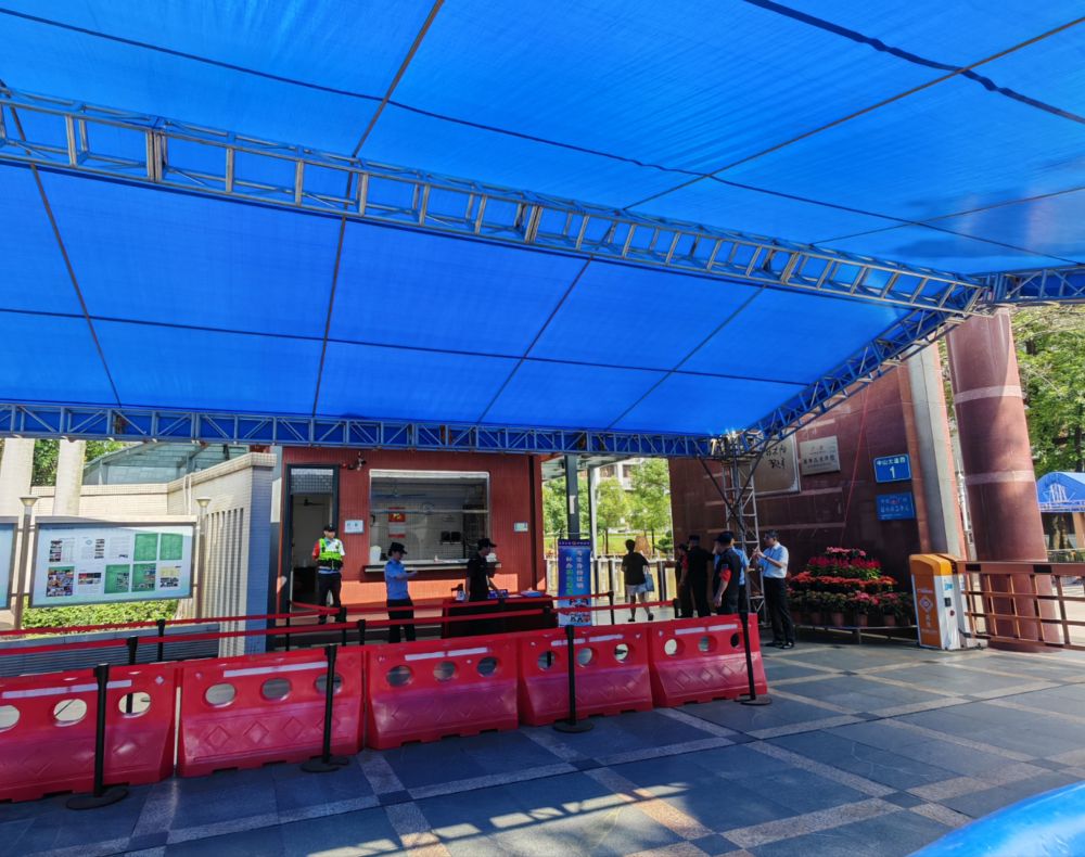 在廣州,華南師范大學附屬中學考點前的保障人員早早就位。考點所轄派出所派出工作人員現場維持秩序,交警疏導交通,讓考生進考場的通道更加清晰有序??键c為考生準備了午餐,考生可購買飯票就餐,并在考點安排的教室午休。