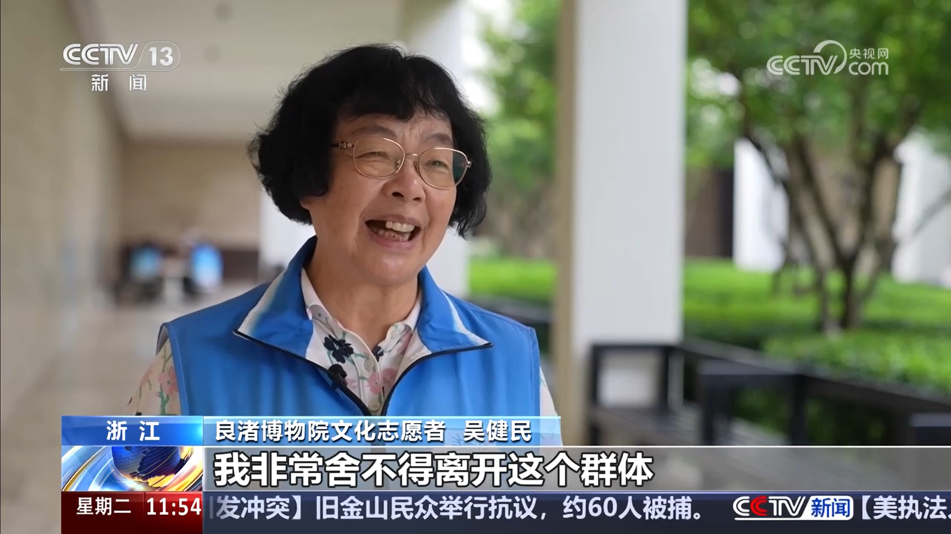 良渚博物院文化志愿者 吳健民:博物館就像一個老年大學一樣,大家在這個平臺上進行交流,互相學習,非常好的一種氛圍。只要我身體允許的情況下,我非常舍不得離開這個群體。