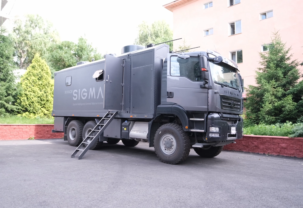 6月2日,哈薩克斯坦國家農業研究型大學校園內停放著中哈雙方聯合研發的“西格瑪應急指揮車”。新華社記者張爽攝