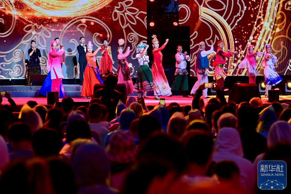 中國文聯文藝志愿服務團隊“送歡樂下基層”文藝演出在新疆伊犁哈薩克自治州霍城縣香水體育公園舉行(6月14日攝)。