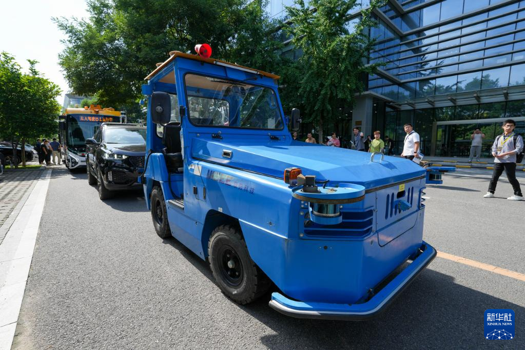 6月16日,在北京馭勢科技拍攝的一款用于機場物流作業的無人駕駛牽引車。新華社記者 鞠煥宗 攝