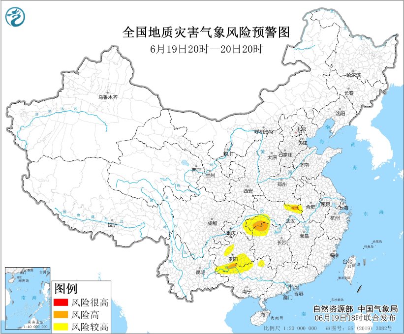自然資源部與中國氣象局同一時間聯合發布地質災害氣象風險預警,預計19日20時至20日20時,安徽西部、河南南部、湖北東北部和西南部、湖南西北部、廣西北部、重慶東部、貴州西部和南部、云南東部等地部分地區發生地質災害的氣象風險較高(黃色預警)。其中,安徽西部、河南南部、湖北東北部和西南部、湖南西北部、廣西北部、貴州南部等地部分地區發生地質災害的氣象風險高(橙色預警),需做好地質災害防御工作。