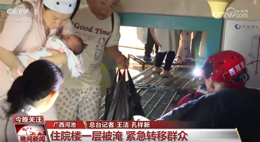 這兩天,廣西河池多地遭遇強降雨天氣。河池市人民醫院住院部大樓一層出現嚴重積水,幾百名住院的病人和陪護家屬需要轉移,救援人員迅速行動起來。