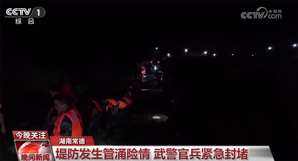 22日凌晨2點半,武警常德支隊官兵抵達現場,大家腳踩鐵鍬、手托麻袋,采取鏈路傳遞的方式,把沙袋源源不斷運到管涌處。截至22日晚上8點,管涌群封堵完畢。武警官兵仍堅守一線,與地方應急、水利、氣象等部門保持緊密聯系,妥善應對下一步險情排查和科學處置。