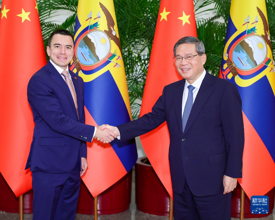 李強(qiáng)指出,中厄同為發(fā)展中國家,都把發(fā)展經(jīng)濟(jì)、改善民生作為重要任務(wù)。中方愿同厄方加強(qiáng)發(fā)展戰(zhàn)略對接,密切“一帶一路”合作,擴(kuò)大雙邊貿(mào)易規(guī)模,深化在清潔能源、基礎(chǔ)設(shè)施、金融等領(lǐng)域合作。中方樂見更多厄方優(yōu)質(zhì)產(chǎn)品輸華,歡迎厄方用好進(jìn)博會(huì)等推介平臺(tái)。雙方要繼續(xù)加強(qiáng)教育、文化、青年等領(lǐng)域交流合作,便利人員往來,夯實(shí)兩國關(guān)系的民意基礎(chǔ)。中方愿同厄瓜多爾等拉美和加勒比國家一道,以共建中拉命運(yùn)共同體“五大工程”為契機(jī),在實(shí)現(xiàn)現(xiàn)代化的道路上攜手前行。中方也愿同厄方加強(qiáng)在聯(lián)合國等多邊機(jī)制的溝通協(xié)調(diào),踐行真正的多邊主義,為維護(hù)世界和平和發(fā)展、推動(dòng)構(gòu)建人類命運(yùn)共同體作出積極貢獻(xiàn)。