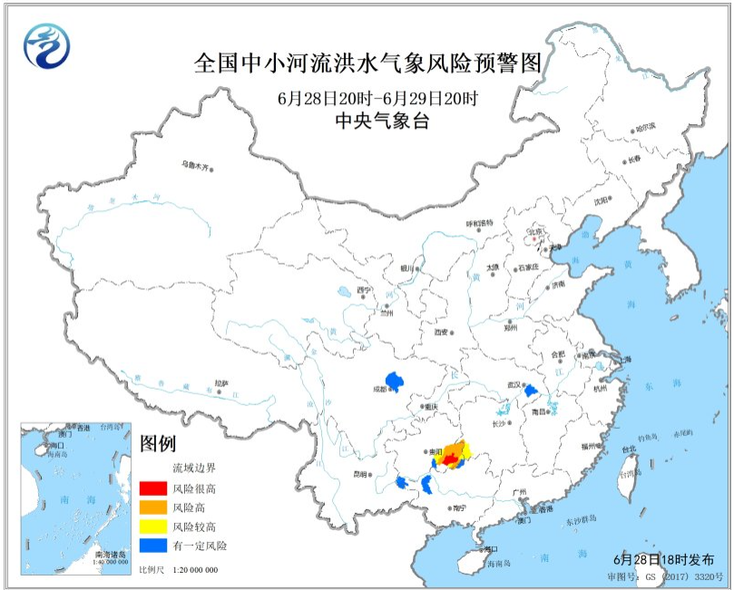 中央氣象臺6月28日18時發布中小河流洪水氣象風險預警: