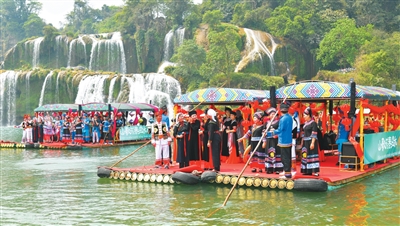 崇左市大新縣西與越南接壤。近年來,大新縣充分發揮跨境旅游合作區的“磁吸”效應,以文化旅游加強中越人文交流,開辟中越文明交流互鑒新路徑。大新縣舉辦中越德天(板約)瀑布跨境旅游合作區嘉年華、“三月三”系列活動等,推出壯族風情舞蹈、中越美食長桌宴、中越界河山歌擂臺賽、中越傳統手工藝品集市、中越名特優商品促銷活動等,讓文化潮聲與德天瀑聲在邊境線上交“響”呼應。