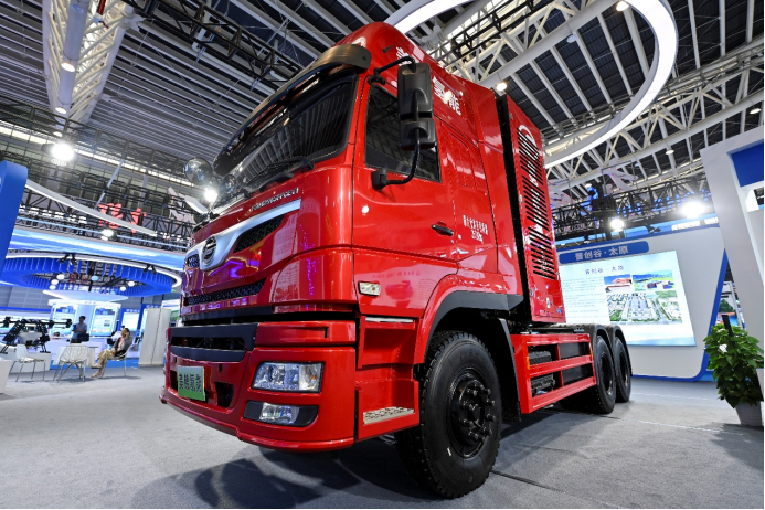 在2024中國(太原)國際能源產業博覽會上拍攝的氫能重卡。新華社記者 楊晨光 攝