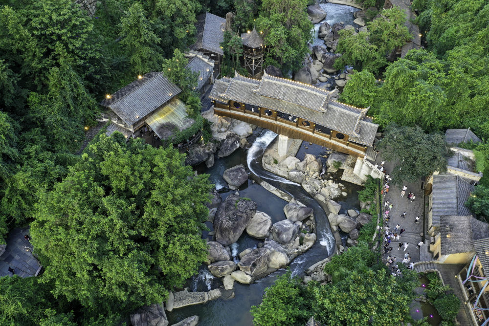 修復(fù)后的生態(tài)資源如何發(fā)揮經(jīng)濟(jì)效益?2010年,廣信區(qū)引進(jìn)九牛文旅集團(tuán),以峽谷漂流為旅游發(fā)展切入點(diǎn),花費(fèi)10多年時(shí)間一步步打造出一個(gè)集山水人文景觀、民俗體驗(yàn)、活動演藝于一體的度假旅游區(qū)。九牛文旅集團(tuán)副總裁熊慧介紹,為了“給游客一個(gè)來的理由”,公司在110多米高的懸崖上凌空打造出“懸崖民宿”,客房的設(shè)計(jì)布局各不相同,房間地面不是傳統(tǒng)的地板,而是透明的懸空玻璃,游客站在床邊,低頭就能看到飛瀉的瀑布和流淌的溪水。