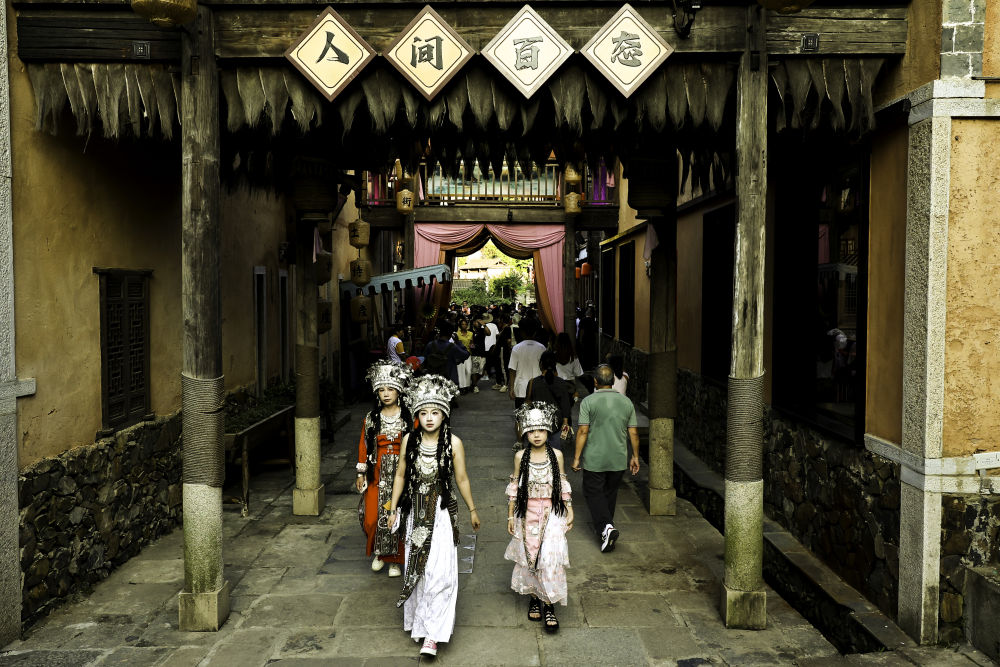夜幕降臨,記者隨“活力中國調(diào)研行”采訪團(tuán)來到景區(qū),遠(yuǎn)處懸崖燈火璀璨,如影視劇一般的場景在眼前浮現(xiàn)。游客或沉浸式體驗(yàn)情景劇、舞蹈劇、雜技等演出,或身著古裝拍照打卡,在熱鬧的氛圍里感受“仙俠世界”的浪漫。
