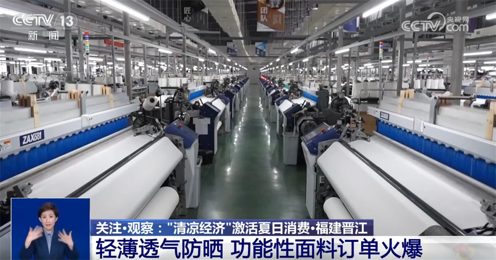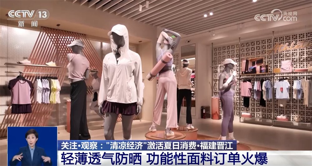 除了旅游消費,盛夏時節,防曬產品也迎來銷售旺季。在福建晉江,這里的多家服裝生產或紡織面料企業生產的涼感、速干、驅蚊、防曬等功能性面料訂單火爆,備受市場青睞。