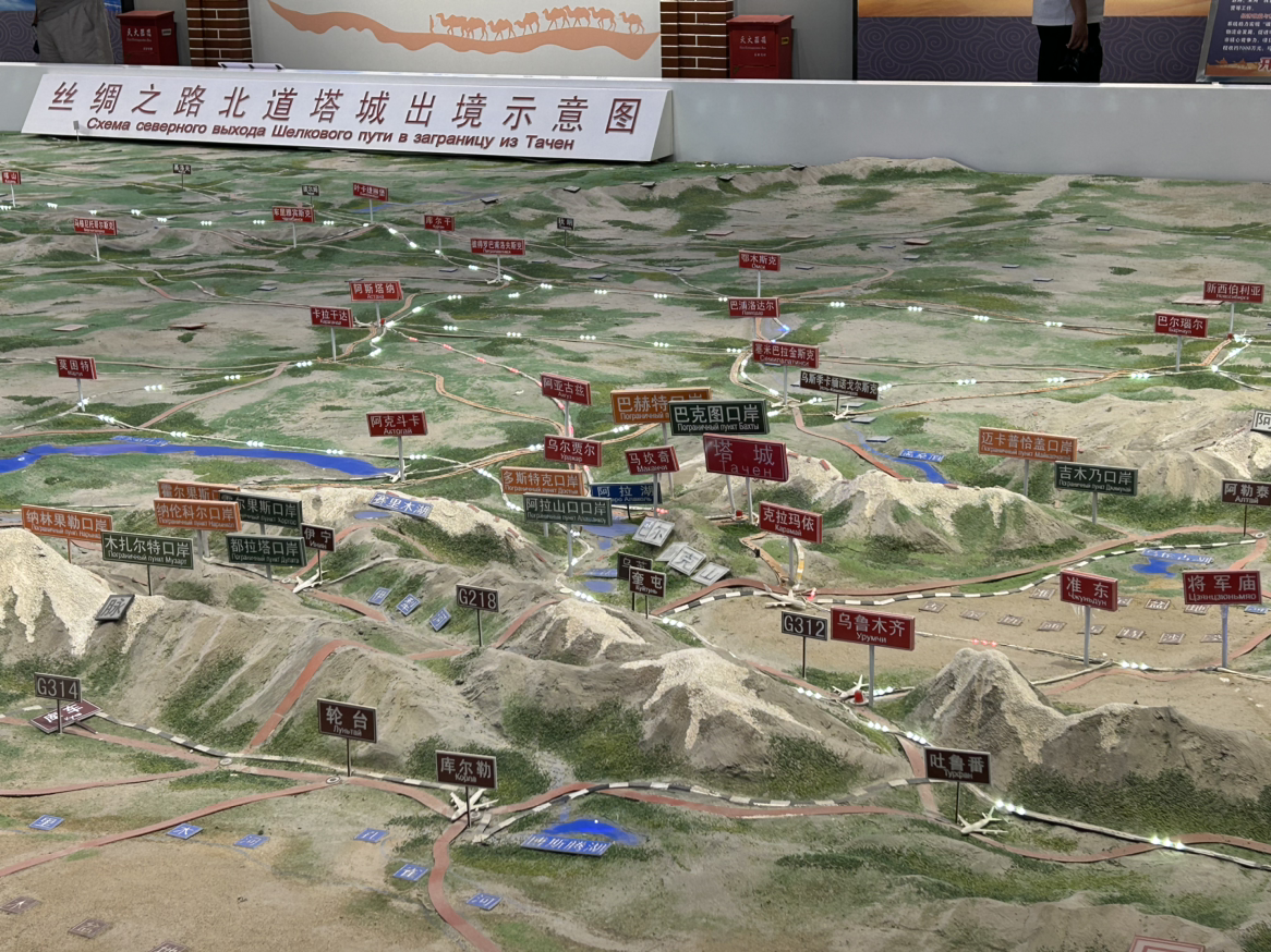 在巴克圖口岸文化展示館,解說員趙倩指著一張乾隆年間的易貨貿易圖介紹:“從1764年民間駝隊往來,到1854年正式通商,這里始終是亞歐大陸重要的貿易走廊。”館內沙盤清晰呈現“一核、兩廊、三區”新布局,2025年上半年數據顯示,口岸出入境人員同比增長167.82%,通關時間較往年縮短40%。“現在的司機用手機APP就能完成申報,邊民互市‘整進整出’模式讓貿易更高效。”趙倩說道。