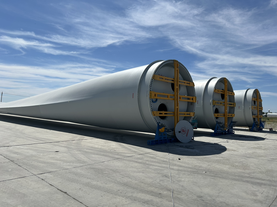 距口岸8公里的塔城重點開發開放試驗區建設現場,三一風電的巨型葉片正等待出口。“我們生產的葉片單只長度達112米,重達41噸,平均每80個工時可以生產一只,單只的成本價在120萬左右。目前,我們公司接收著來自世界各地的訂單” ,塔城風電設備有限公司行政事務專員阿斯哈爾 阿根三一表示。