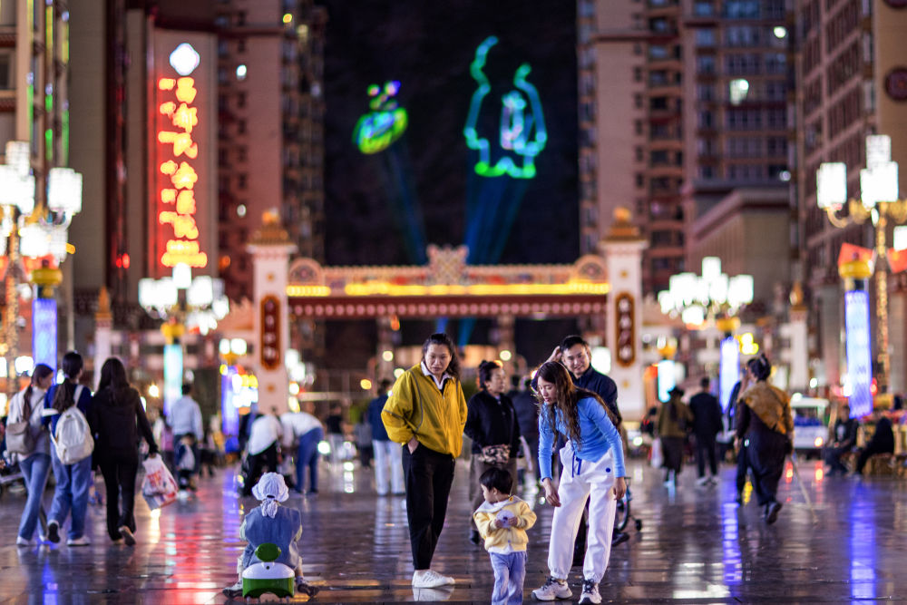 市民在昌都市茶馬廣場休閑。新華社記者 姜帆 攝