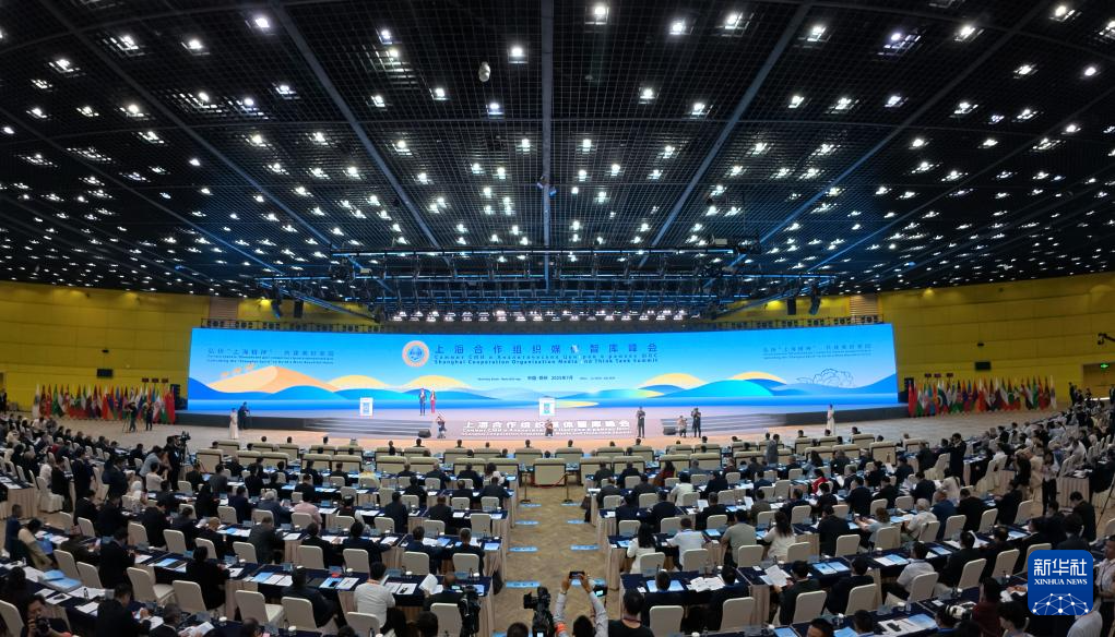 這是7月25日拍攝的上海合作組織媒體智庫峰會全體會議現場。新華社記者 朱祥 攝