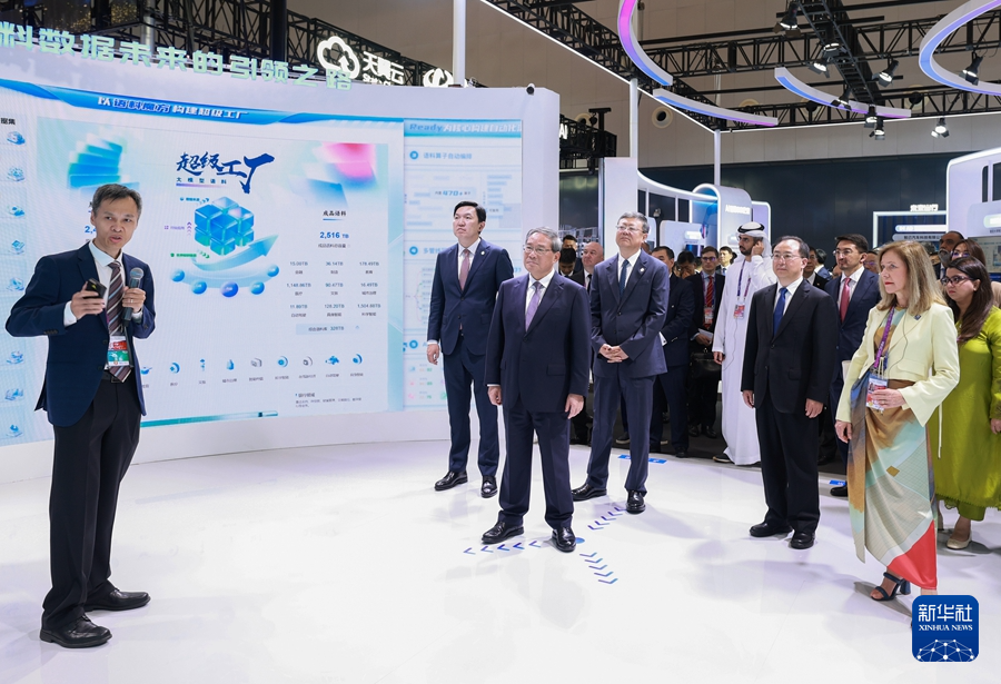 開幕式后,李強同與會外方嘉賓、國際組織代表共同巡館,并與有關科研機構和企業負責人互動交流。