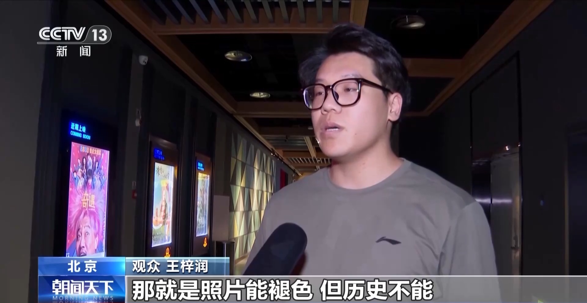 觀眾 王梓潤:電影中有一句話讓我印象深刻,那就是照片能褪色但歷史不能。看了這部電影,尤其是當電影結束燈光亮起的那一刻,我看到了現在祖國的繁榮昌盛。我希望像我一樣的年輕人能夠銘記這段歷史,振興中華。