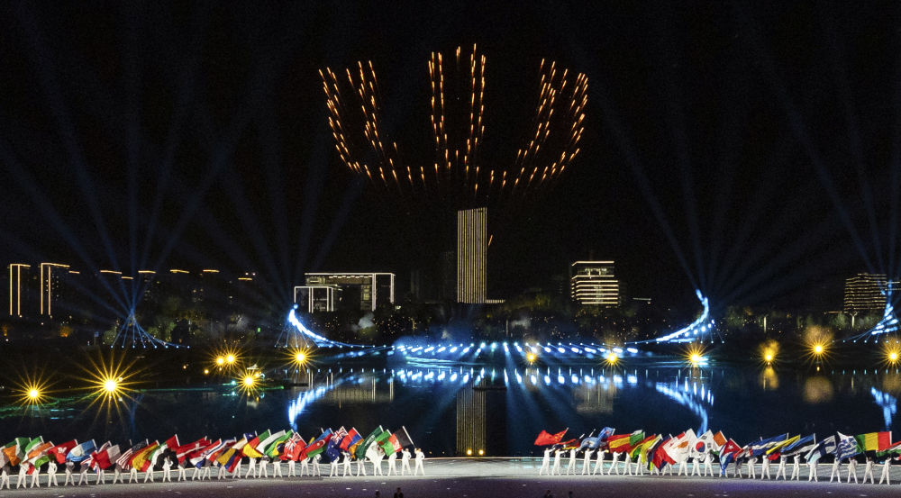 8月7日,演員在開幕式上表演。新華社記者 梁旭 攝