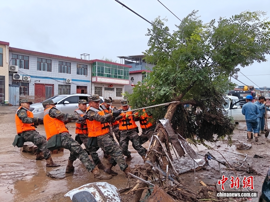 截至8日晚,武警甘肅總隊投入396名兵力開展道路清淤、人員搜救、搬運物資等救援行動,共轉(zhuǎn)移群眾171人、搜救被困群眾5人、救治受傷群眾2人、清理危房6處、轉(zhuǎn)移受損車輛12輛,累計清理淤泥、山石700余方,搜索河道6公里、搶通道路2300米。圖為8月8日,武警甘肅總隊機(jī)動支隊官兵挺進(jìn)災(zāi)區(qū)甘肅省蘭州市榆中縣馬坡鄉(xiāng)舊莊溝村展開救援。劉昆 攝
