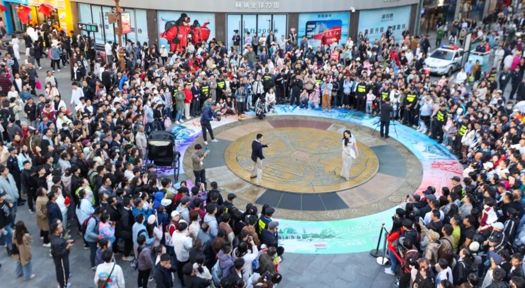 “抬頭看!茶花女在陽臺唱《飲酒歌》!”今年端午假期,意式風(fēng)情區(qū)洋樓陽臺秒變歌劇包廂,觀眾不用買票,端著冰淇淋就能聽威爾第。同一時刻,金街大銅錢廣場《日出》沉浸式上演,“陳白露”從民國海報里走下來,旗袍一擺,鉆進人群;古文化街戲樓前,群口快板《花板唱響文化街》竹板翻飛,游客還沒反應(yīng)過來,已被拉進“包袱”里。