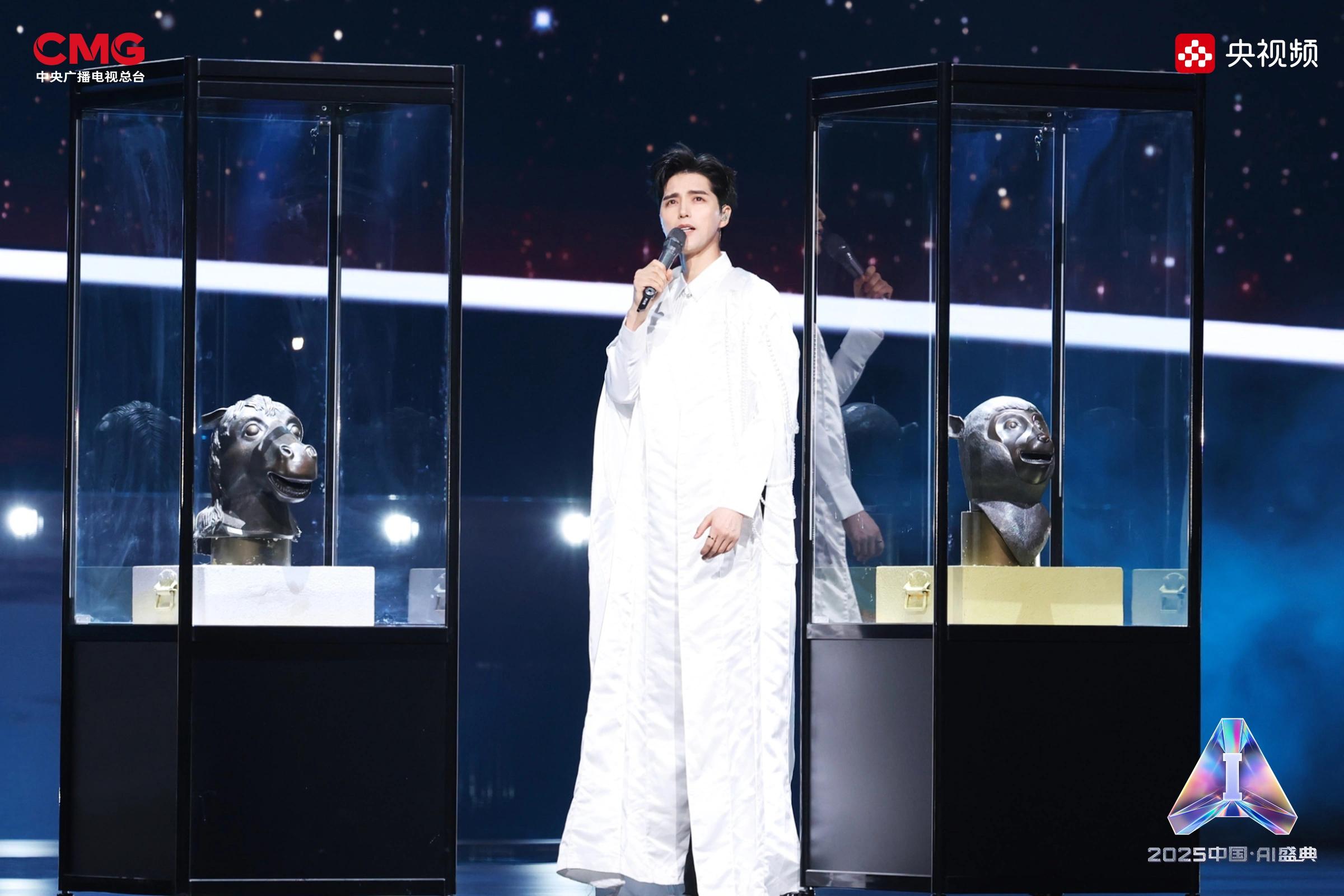 相AI相生,是藝術想象的無限延展。在AI技術的賦能下,沉睡的文物重獲新生:圓明園“十二獸首”(復制品)聚首盛典舞臺,他們化身十二樂師與歌手阿云嘎共同演繹《浮光·十二獸首歸來》,向世界展現東方文化藝術的魅力;《戴珍珠耳環的少女》在MiniMax海螺(Hailuo02)視頻模型的驅動下翩然起舞,與歌手Grace Kinstler隔空對唱《This Is Me》;虛擬偶像“星瞳”與歌手黃齡突破次元壁,浪漫演繹金曲《玫瑰玫瑰我愛你》;根據歌手張英席、石倚潔、蔡程昱照片生成的數字人將與“本尊”同臺獻唱,以中、英、意等語言詮釋經典歌劇歌曲《今夜無人入眠》;AIGC技術更讓兵馬俑開啟環球之旅,在東西方文明的對話中完成文化使者的使命。