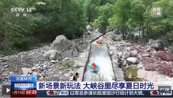 在河南林州太行大峽谷,旅游業態持續“上新”,這是升級后的峽谷漂流,沿途中增加了“水炮”“喊麥”等環節,增強了游客的互動感。