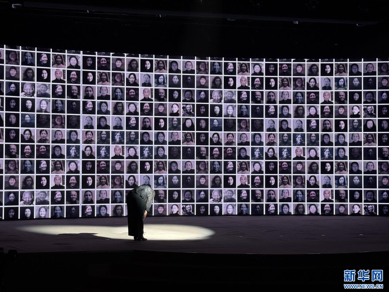 當(dāng)一位位太行奶娘的黑白照片,匯聚到屏幕上時,歌舞劇《太行奶娘》導(dǎo)演楊梅轉(zhuǎn)身,面向奶娘們深深鞠躬。