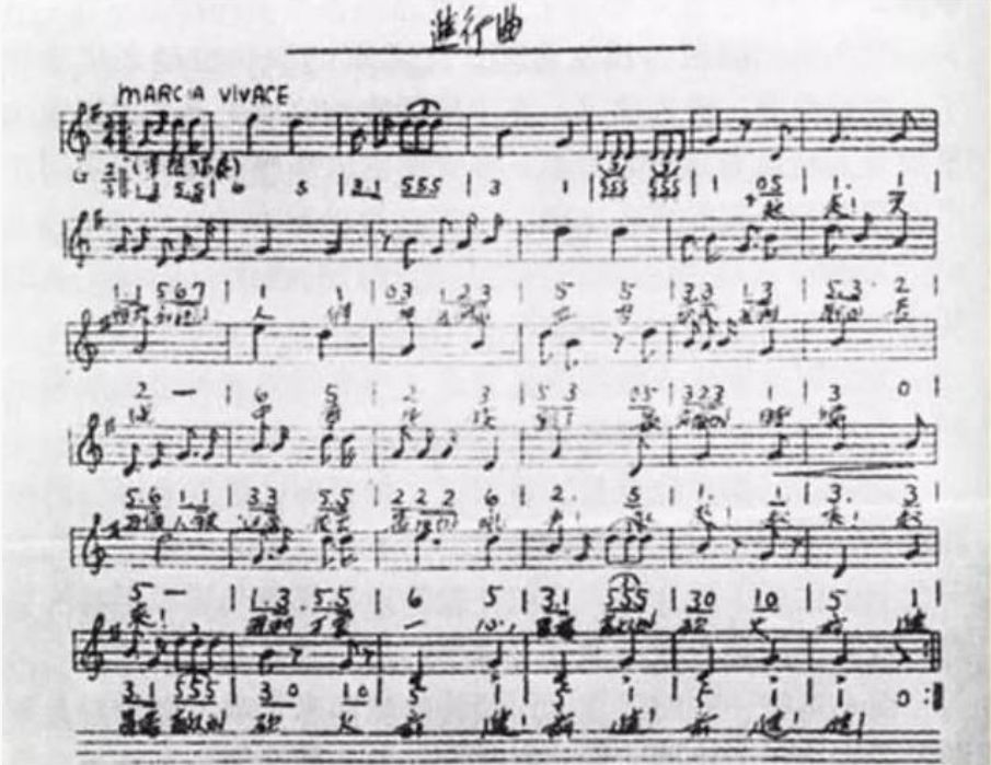 手稿被弄濕的地方有些字跡模糊了,孫師毅補上“炮火”二字,于是有了“冒著敵人的炮火前進”的唱詞。田漢的好友聶耳主動請纓為主題歌作曲,后來這首歌被命名為《義勇軍進行曲》。