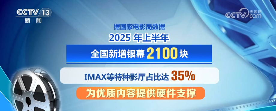 據國家電影局數據,2025年上半年,全國新增銀幕2100塊。其中,IMAX等特種影廳占比達35%,為優質內容提供硬件支撐。