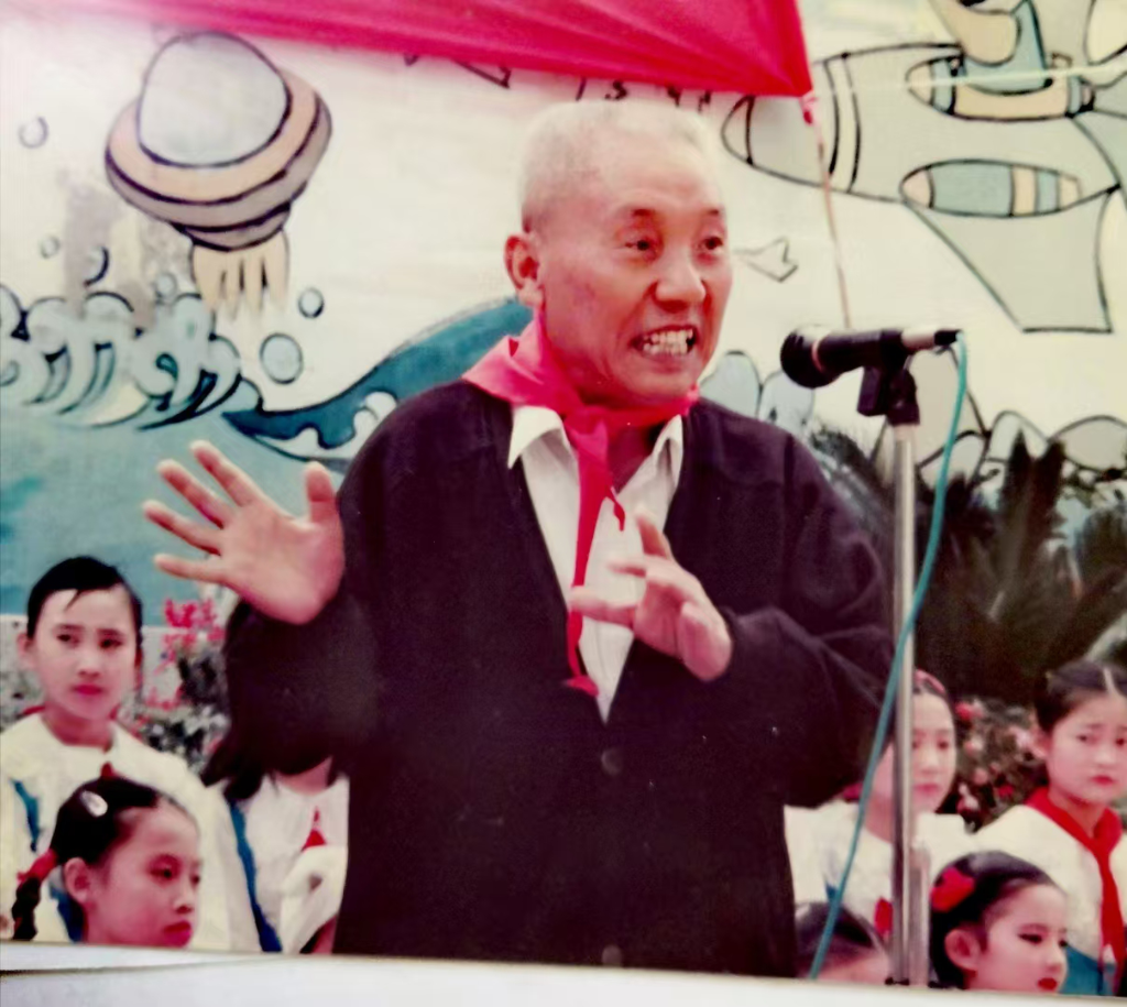 ↑李德富為漢口鄱陽街小學(xué)師生進(jìn)行愛國(guó)主義教育演講