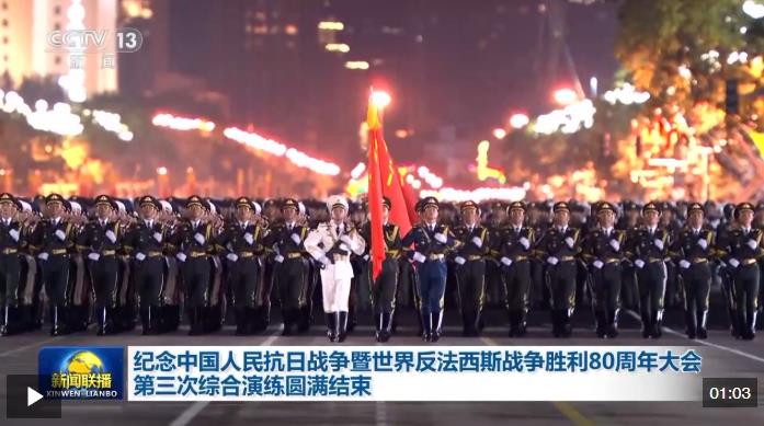 記者從中國人民抗日戰爭暨世界反法西斯戰爭勝利80周年紀念活動新聞中心獲悉,8月23日17時至8月24日5時,北京天安門地區舉行了紀念中國人民抗日戰爭暨世界反法西斯戰爭勝利80周年大會第三次綜合演練。據介紹,這是一次全流程、全要素預演,也是紀念大會最后一次綜合演練,包括紀念大會儀式(含閱兵)、轉場、觀眾組織及應急處置等各項內容,重點檢驗了各流程、各環節的銜接配合,為正式活動的成功舉辦打下堅實基礎。