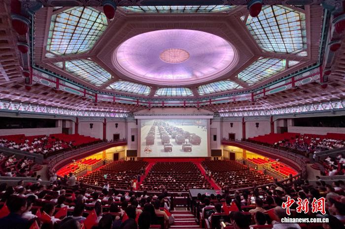 為紀念中國人民抗日戰爭暨世界反法西斯戰爭勝利80周年,“銘記歷史,傳承薪火”千人觀看閱兵直播活動當天在廣州舉行。其中,來自美國、英國、新西蘭、馬來西亞等25個國家的青年僑領、歸僑代表等60人在中山紀念堂與各行業代表、學生代表等1000余人共同觀看直播。