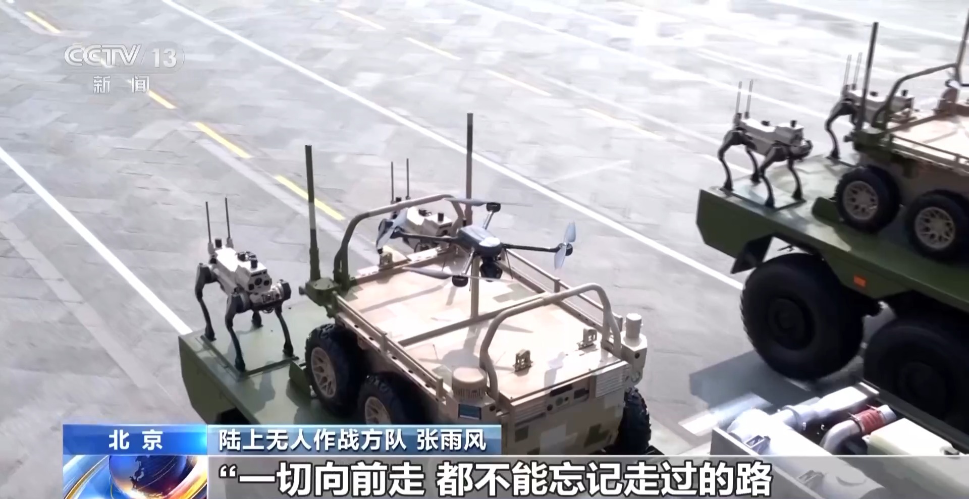 陸上無人作戰方隊 張雨風:如今,我們擁有了先進的武器裝備,更要牢記中華民族一路走來的艱辛,牢記人民軍隊使命初心,弘揚好抗戰偉大精神,把手中先進武器裝備轉化為部隊實際作戰能力,聚力打贏實現建軍一百年奮斗目標攻堅戰。