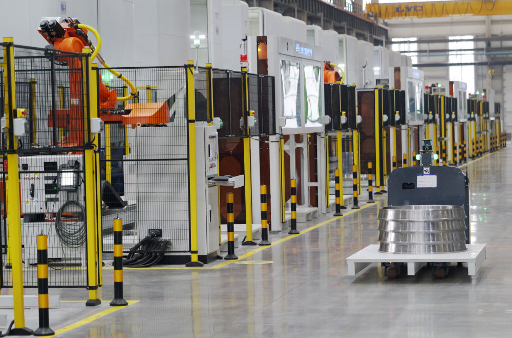 5月22日,自動導引車在洛軸集團智能工廠生產線上作業。新華社記者 李嘉南 攝