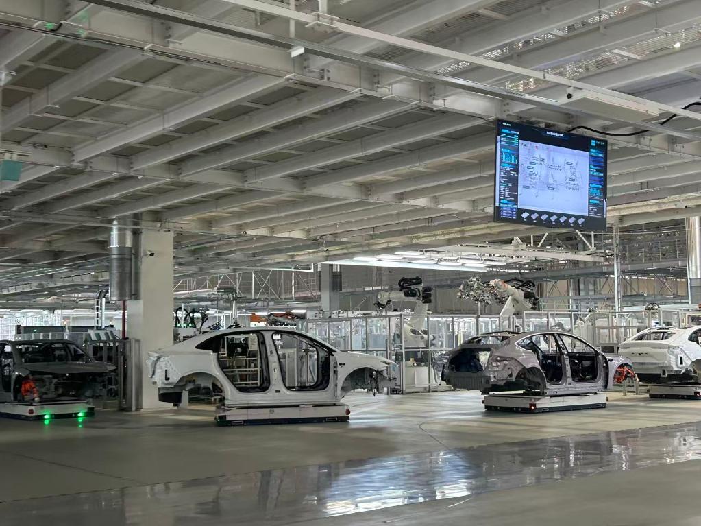 合肥市新橋智能電動汽車產業園蔚來第二工廠內拍攝的新能源汽車生產線。新華社記者吳慧珺 攝