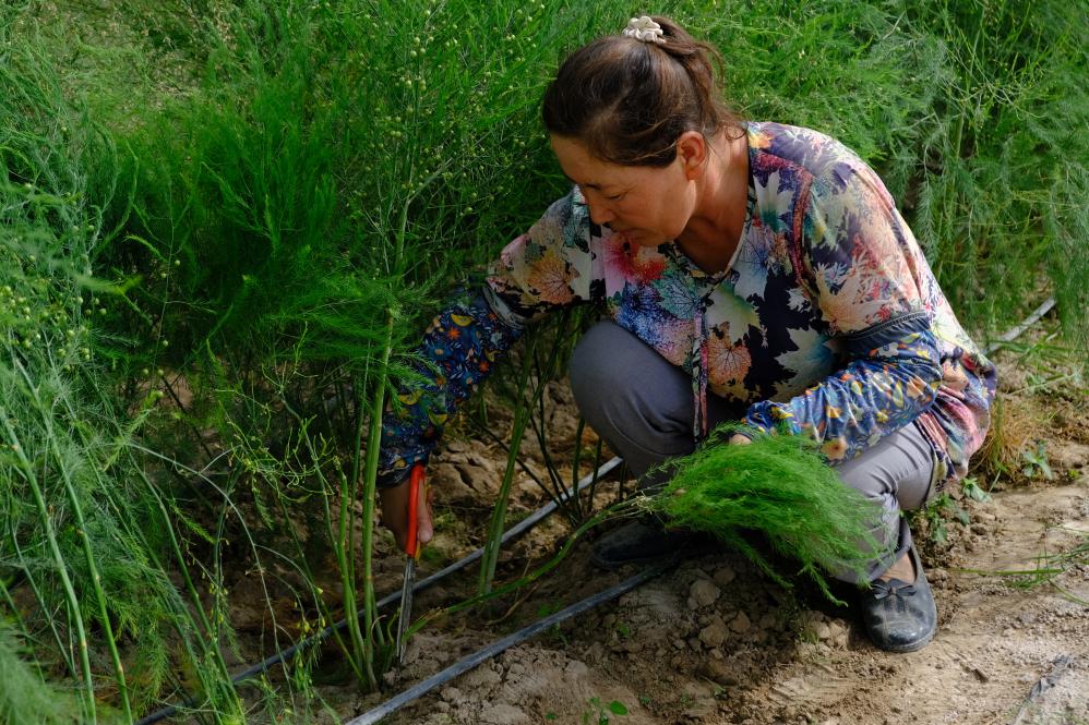 2024年春天,新疆克孜勒蘇柯爾克孜自治州阿克陶縣,如今已是當地蘆筍基地技術人員的努爾比耶·艾則孜,第一次見到這種“長得像綠色小樹苗”的蔬菜。她好奇地掰下一根,清甜脆嫩的口感瞬間征服了她,“半輩子都沒嘗過這么鮮的滋味”。